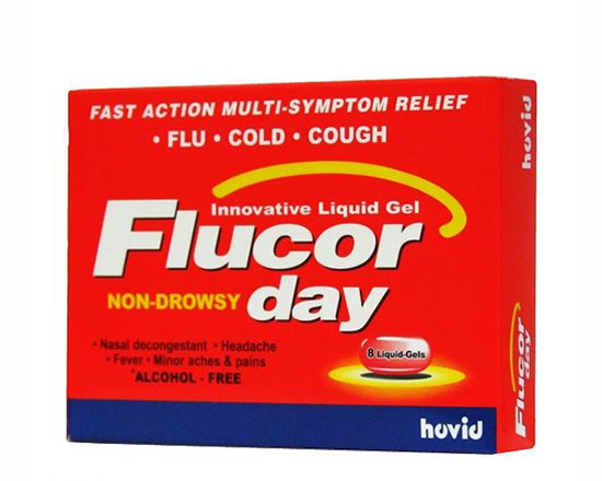 Flucor day is an innovative liquid gel specially formulated to provide relief from the following symptoms; Nasal congestion, headache, fever, minor aches and pains. It is non drowsy.
